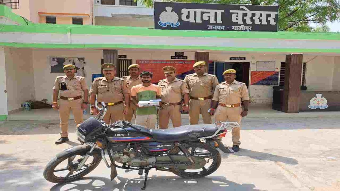 रजनीश कुमार मिश्र गाजीपुर। पुलिस अधीक्षक के निर्देशानुसार चलाएं जा रहे अभियान के तहत बरेसर पुलिस को एक इनामी बदमाश को गिरफ्तार करने में कामयाबी मिली है।अभियुक्त के पास से एक मोटरसाइकिल ,कारतूस व तमंचा बरामद हुआ है।बरेसर थानाध्यक्ष राजेश बहादुर सिंह ने बताया की पकड़े गये गये अभियुक्त के खिलाफ 21.10 21 को थाने में मुकदमा किया गया था।जिसकी तलाश में पुलिस लगातार अभियुक्त के ठिकानों पर दबिश दे रही थी।