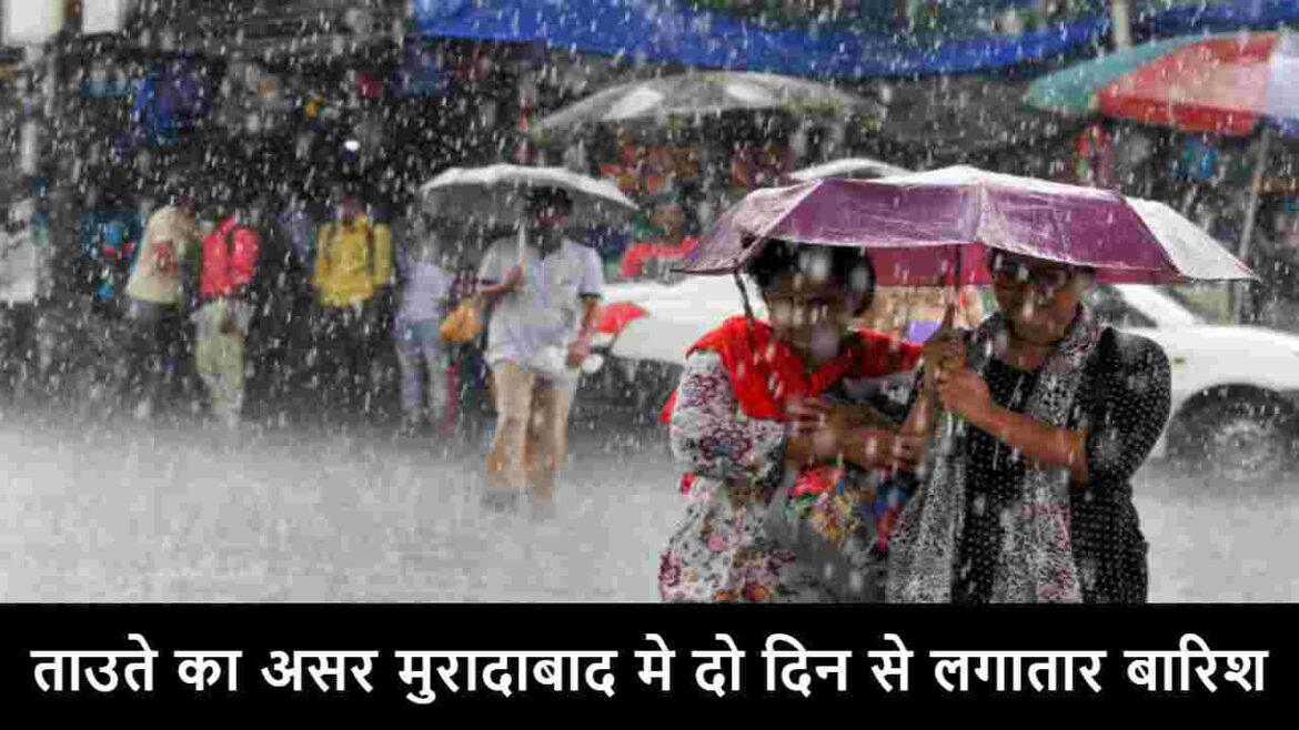 मुरादाबाद । ताउते तूफान के अलर्ट के बाद पश्चिम उत्तर प्रदेश के मुरादाबाद में 2 दिन से लगातार बारिश हो रही है बारिश से सड़कें जलमग्न है और लॉकडाउन में जरूरी काम से निकलने वाले लोग भी परेशान हैं । तेज बारिश और हवाओं की वजह से आम के बागों में तैयार हो रही आम की फसल को भी नुकसान पहुंच रहा है। लॉकडाउन में जरूरी कार्य से निकलने वाले लोग भी सड़कों पर जहां-तहां जगह मिलने पर बारिश रुकने का इंतजार कर रहे हैं, लेकिन लगातार हो रही बारिश रुकने का नाम नहीं ले रही है ।